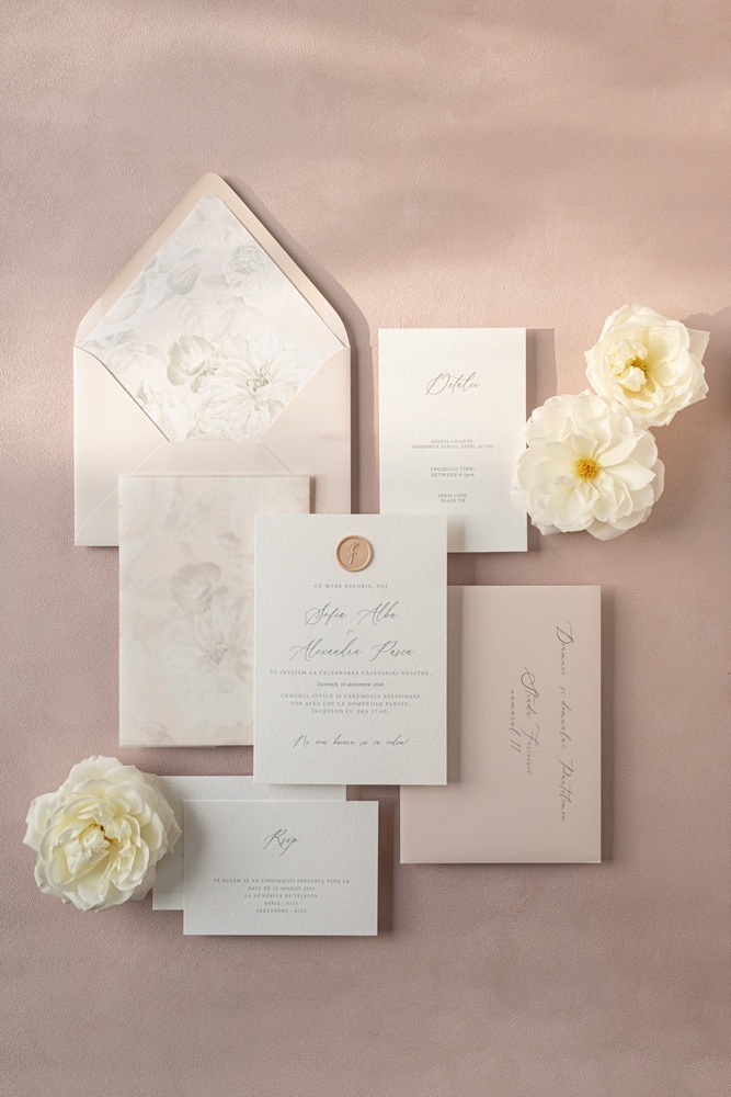 CARD INVITAȚIE - carton din bumbac, învelitoare vellum florală