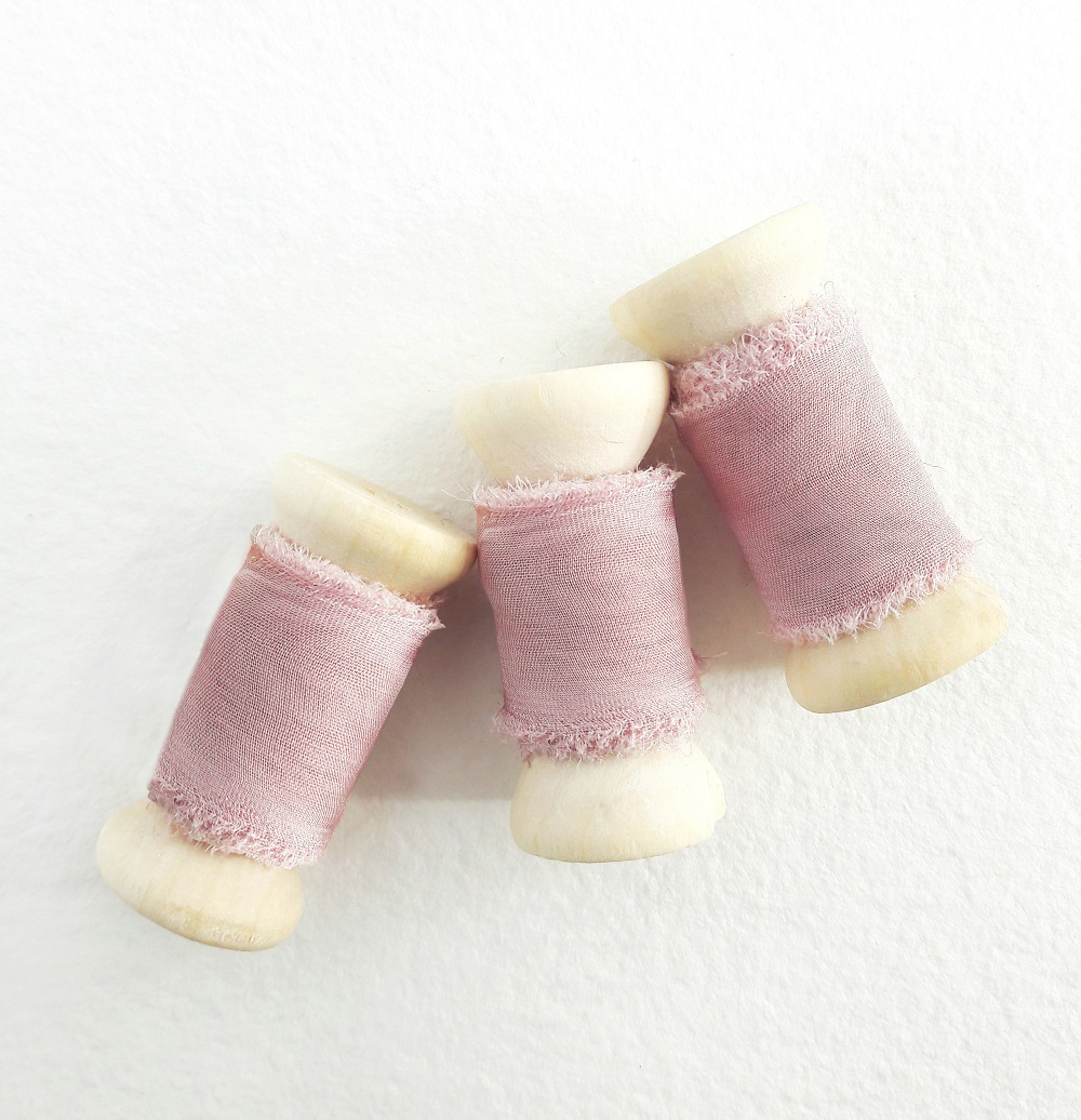 Panglica din voal de matase este realizată manual și are lățimea de 2 cm și lungimea de 3 m, fiind compusă din 2 fâșii de 1,5 m dispuse alternativ pe mosorul din lemn.