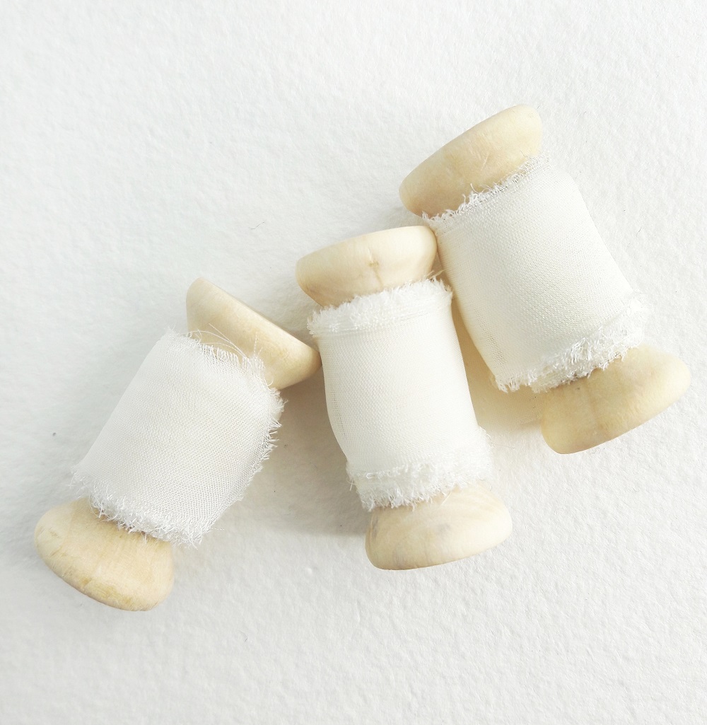 Panglica din voal de matase este realizată manual și are lățimea de 2 cm și lungimea de 3 m, fiind compusă din 2 fâșii de 1,5 m dispuse alternativ pe mosorul din lemn.