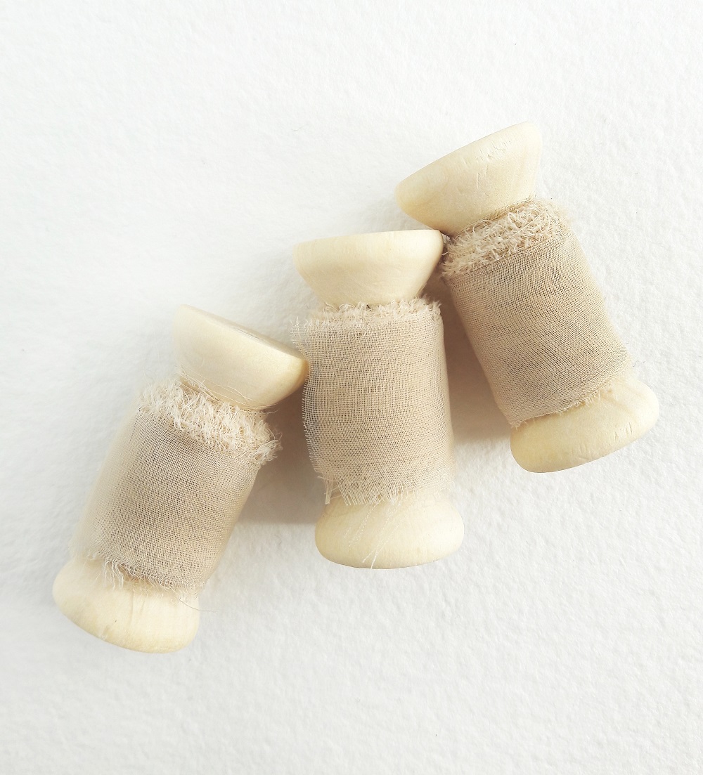 Panglica din voal de matase este realizată manual și are lățimea de 2 cm și lungimea de 3 m, fiind compusă din 2 fâșii de 1,5 m dispuse alternativ pe mosorul din lemn.